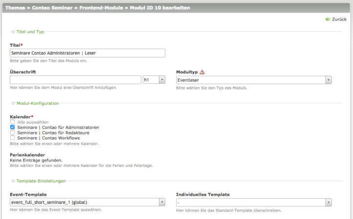 Seminarverwaltung mit Contao, Notification Center, Leads und Calendar Extended