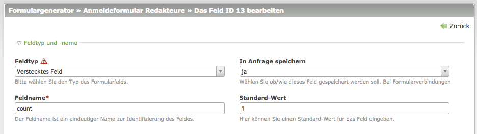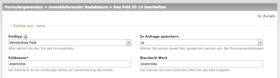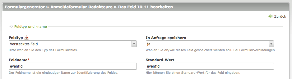 Anfragen speichern -> Hauptkonfiguration -> Master-Formular.