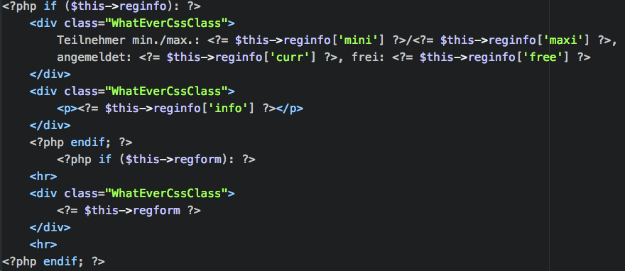 Um die Eventinformationen ausgeben zu können, müssen die Templates erweitert und angepasst werden.